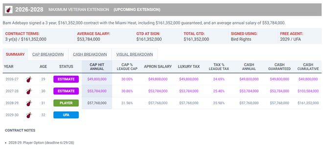 熱巴目前還剩下四年合同,25-26賽季3709萬,在2026年夏開始拿三年1.61億的頂薪,換言之還余下四年1.98億 。他上賽季場均34.3分鐘,拿到18.1分9.6籃板4.3助攻1.26搶斷0.68蓋帽,命中率49%,三分命中率36%,阿德巴約是一位出色的防守者與球隊內(nèi)線核心,他可以打4-5號位。