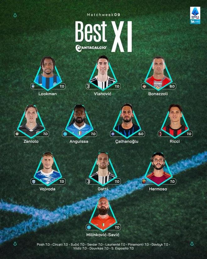 意甲第10輪最佳陣:盧克曼、DV9、扎鳥、恰20、里奇入選